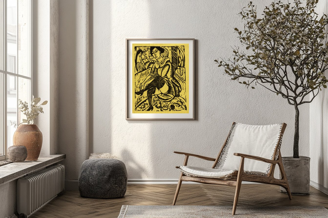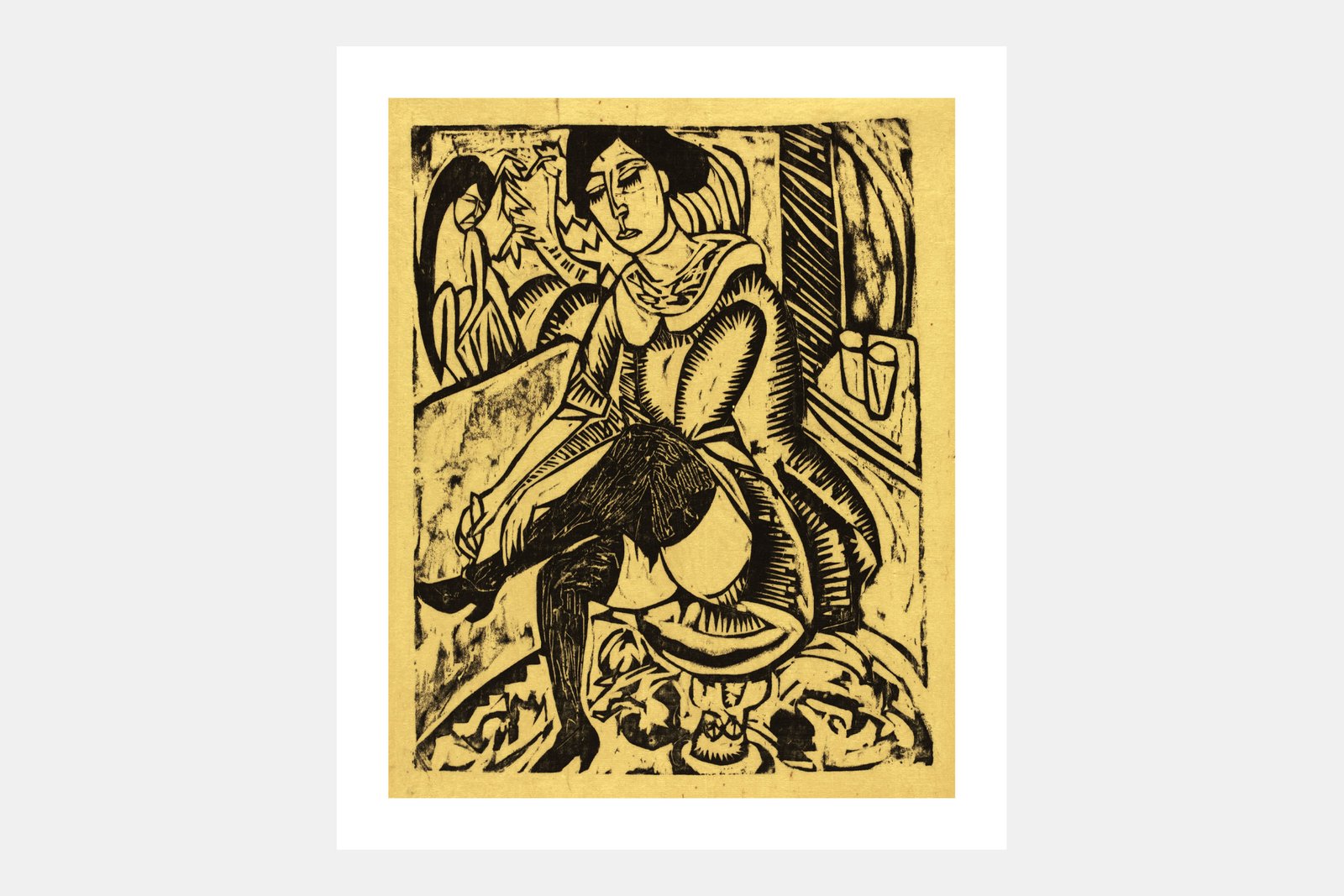 Originally created in c. 1912, this digitally restored magnificent woodcut-artwork depicts a woman putting on her shoes. The original artwork was created by renowned German artist, Ernst Ludwig Kirchner. His work was branded as “degenerate” by the Nazis in 1933, and in 1937 more than 600 of his works were destroyed.